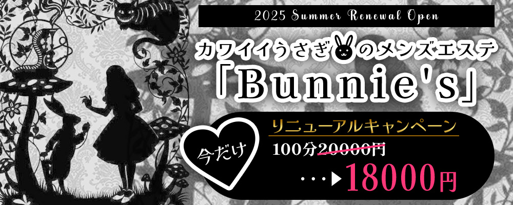 当店について | 2025年夏、かわいいウサギのメンズエステ【Bunnie's】が新大久保&錦糸町エリアに大型リニューアルオープン‼ ついに出張もスタートいたしました🐰 「うさぎのような可愛さ」をテーマに性格やルックス面など、高い採用基準から厳選されたウサギちゃんから当店が一番大切にしている高いホスピタリティと徹底された講習を受けた濃密なマッサージをお楽しみいただけます◎ もちろん趣味や趣向もそれぞれで異なっております。 いたずら好きの子もいれば、献身的な子もいて多種多様な中からその時にしか味わえない感覚、空間をお楽しみいただければと思います。 完全個室のプライベート空間で、日常生活では味わえない2人きりの特別な時間をお過ごしくださいね🐰 |